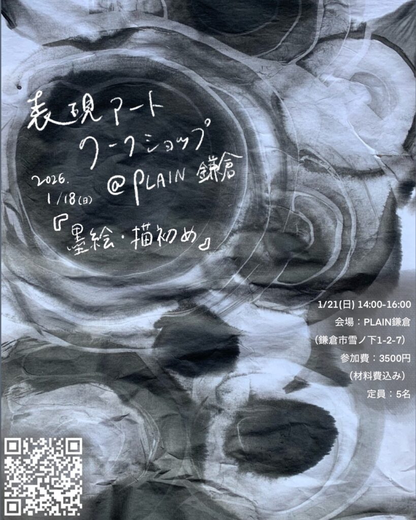 表現アートワークショップ@PLAIN鎌倉 新しい一年のはじまりに、書初めならぬ「描初め」を体験してみませんか?日本人に馴染みの深い墨を使いながら、静かに自分と向き... -