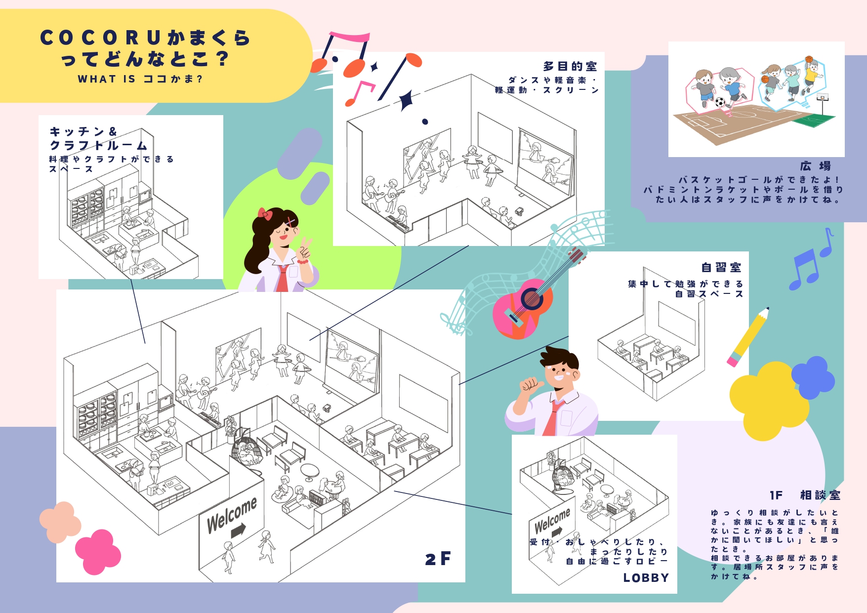 COCORUかまくら(通称:ココかま)は、鎌倉青少年会館をリニューアルして誕生した中高生のための新しい居場所です。学校でも家庭でもない“もうひとつの居場所”として、放課後や休日に自由に過ごしたり、「やってみたい」を実現できる場所。イベントやワークショップも多数開催されており、同世代や地域の人々とのつながりも育めます。予約不要で気軽に利用できるのも魅力です。