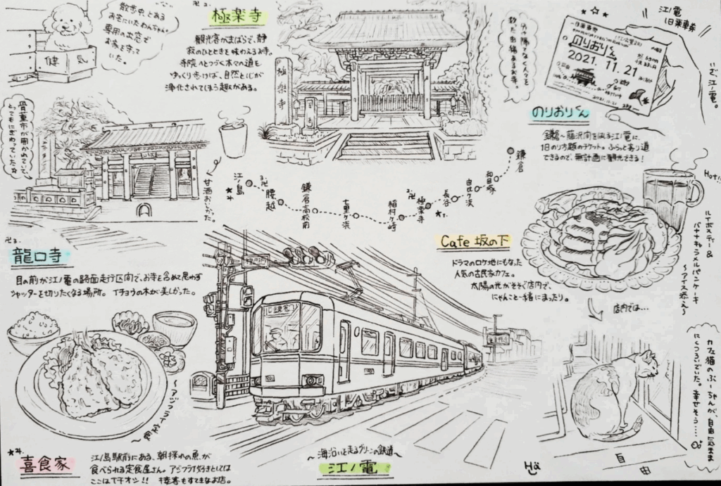 • 2022-2024年 鎌倉の企業やイベントのイメージイラスト、イラストMAPなども手がけ、地域とのつながりを大切に活動中