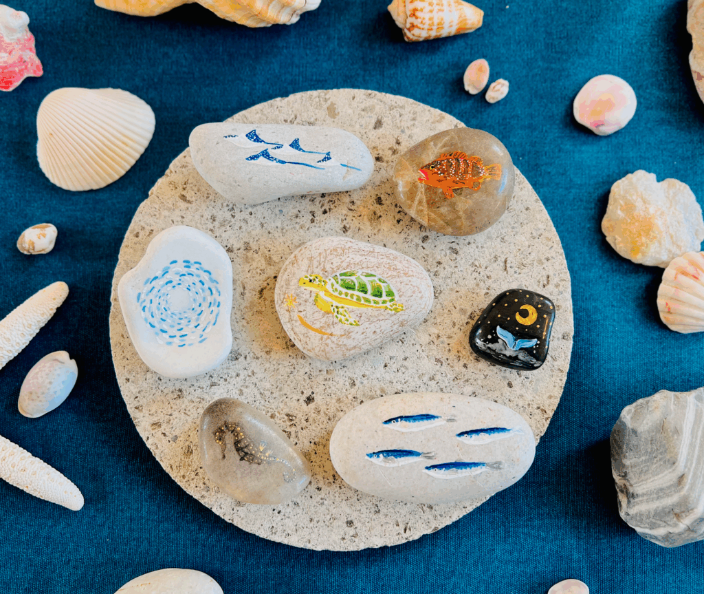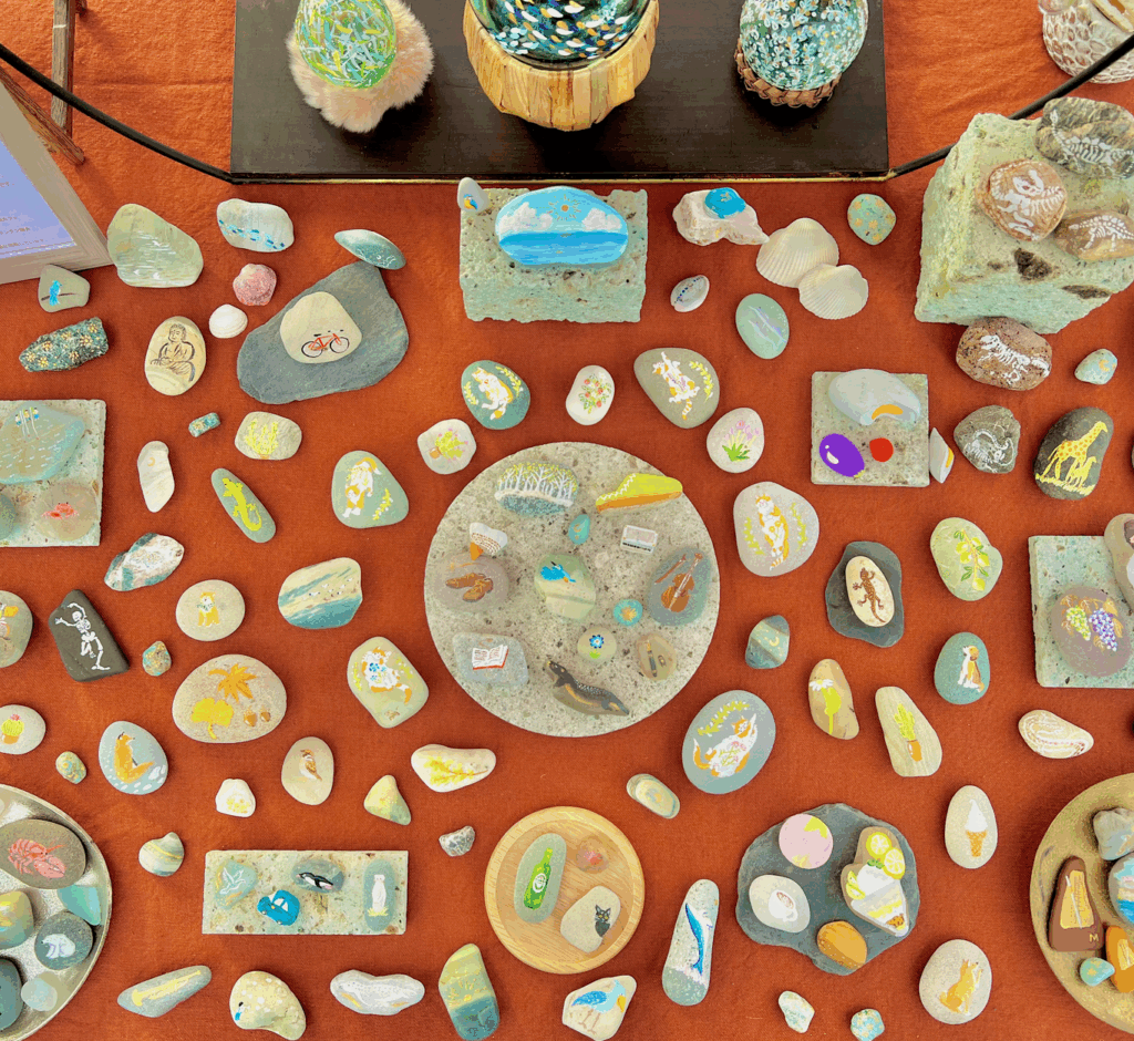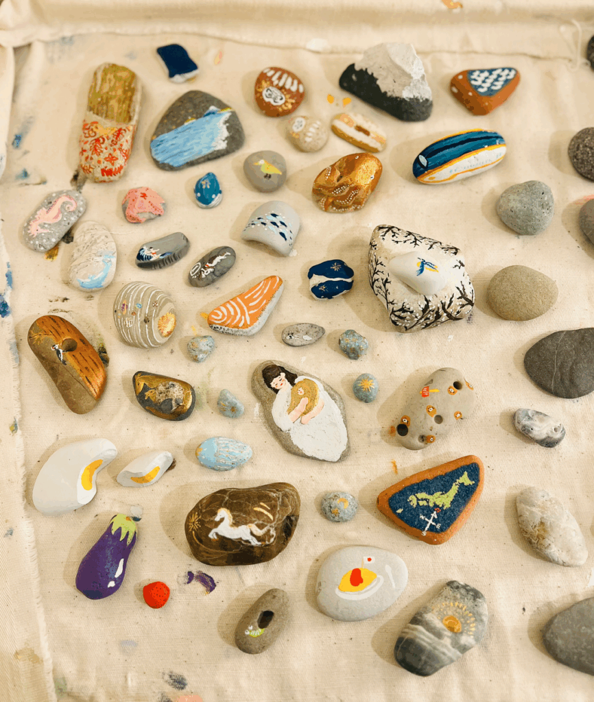 どこにでもあるようで、世界に一つだけの色と形を持つ石。その特徴を活かして描くシリーズは、作品を通じて“自分だけの特別な一握り”を見つけてほしいという思いが込められています。