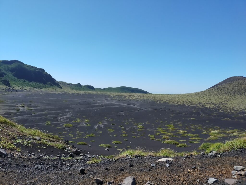 見渡す限り広がる、黒い火山岩(スコリア)の大地。 草木もまばらなその風景は、ここが東京であることを、そして日本であることを忘れさせてくれます。聞こえるのは風の音だけ。 ただそこに立ち、深呼吸をするだけで、日々の喧騒がスッと消えていくような感覚。地球が秘めた荒々しく、根源的な地球のパワーを感じられる場所です。