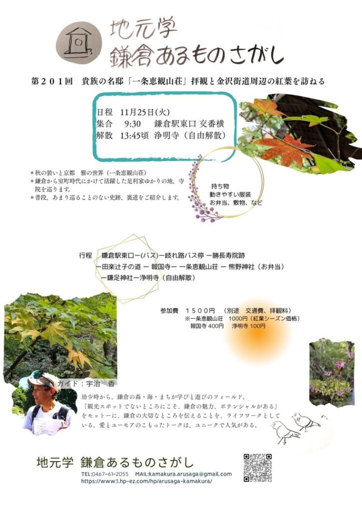 今回は、貴族の名邸「一条恵観山荘」拝観と金沢街道周辺の紅葉を訪ねる企画です。