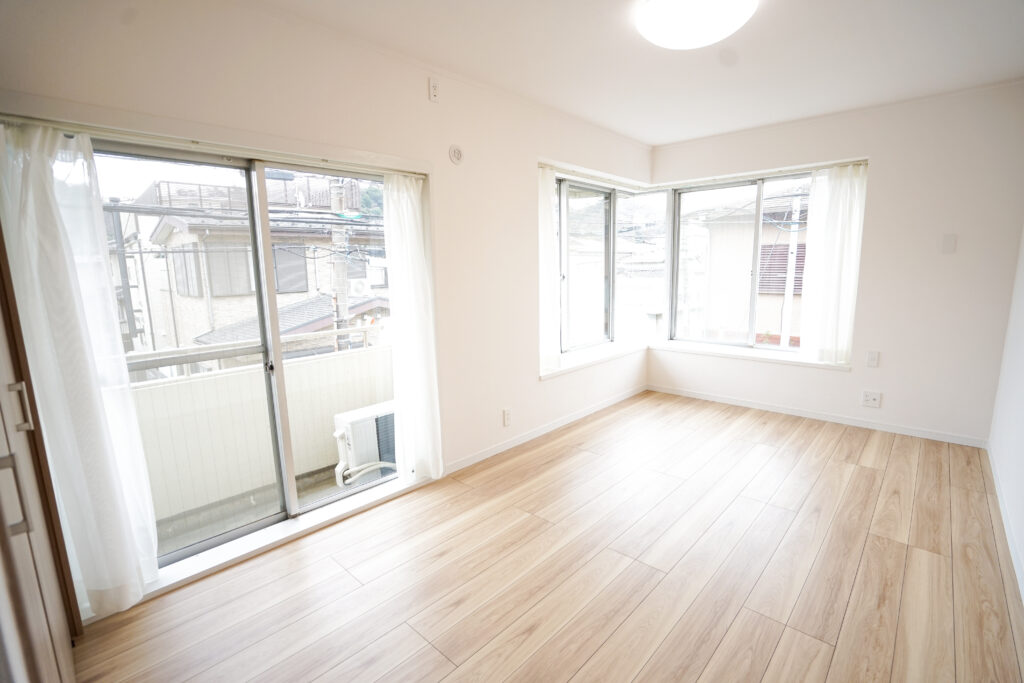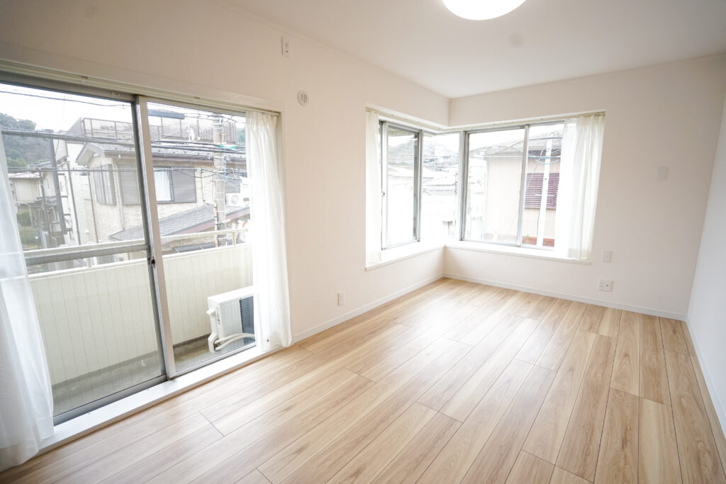 2階の居室は約6.8帖と約7.1帖。バルコニーに面し、採光と通風を確保。前面は小町大路ですが、若宮大路のような観光動線ではないため、中心地ほど過度な交通量はありません。