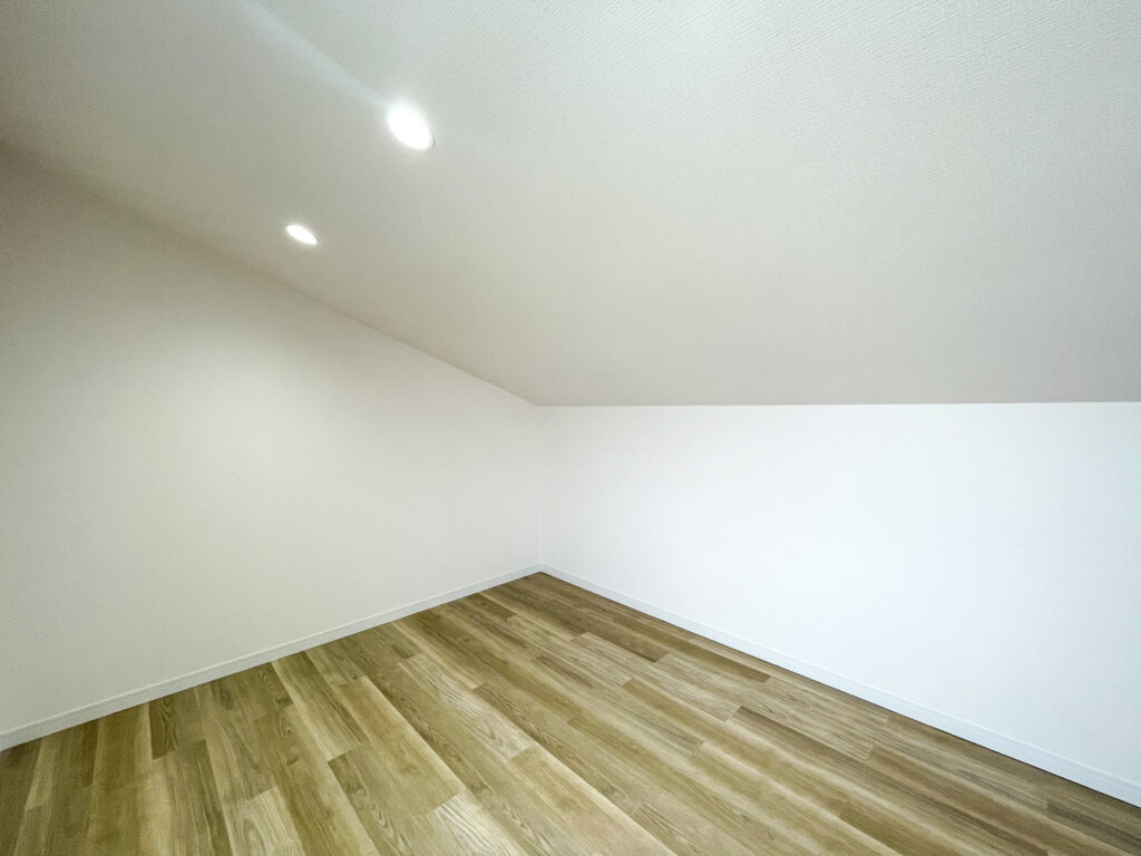 一方、約8.3帖の洋室は主寝室としても十分成立するサイズ。ダブルベッド+収納を置いても動線が確保できます。14.3帖を事業用・趣味用に使い、8.3帖をプライベート空間にするなど、用途の切り分けがしやすいのが1階の強みです。