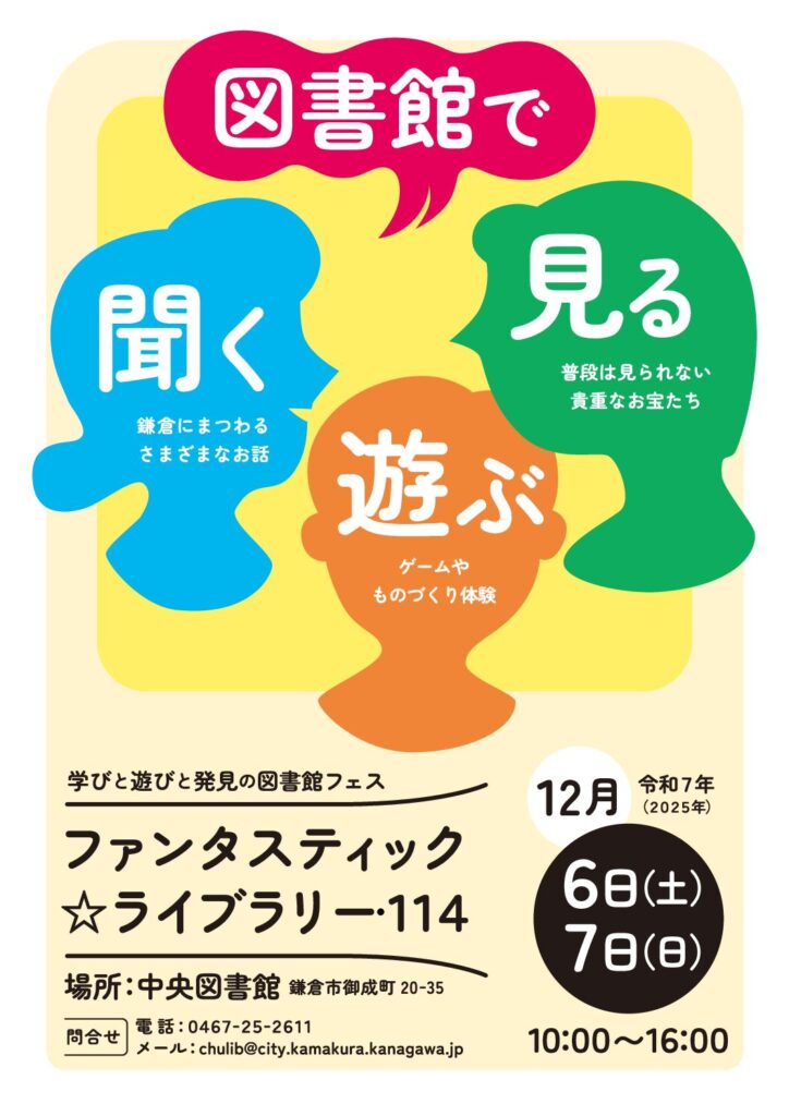 📚 鎌倉の知的好奇心を満たす二日間! 鎌倉の皆さん、そして湘南の暮らしに興味を持つ皆様へ。 いつも静かに時が流れる鎌倉市中央図書館が、年に一度の賑わいを...
